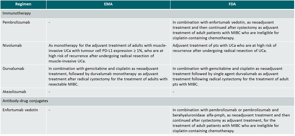 Regulatory approval status of drugs limited to the M0 MIBC setting (status 14 January 2026)